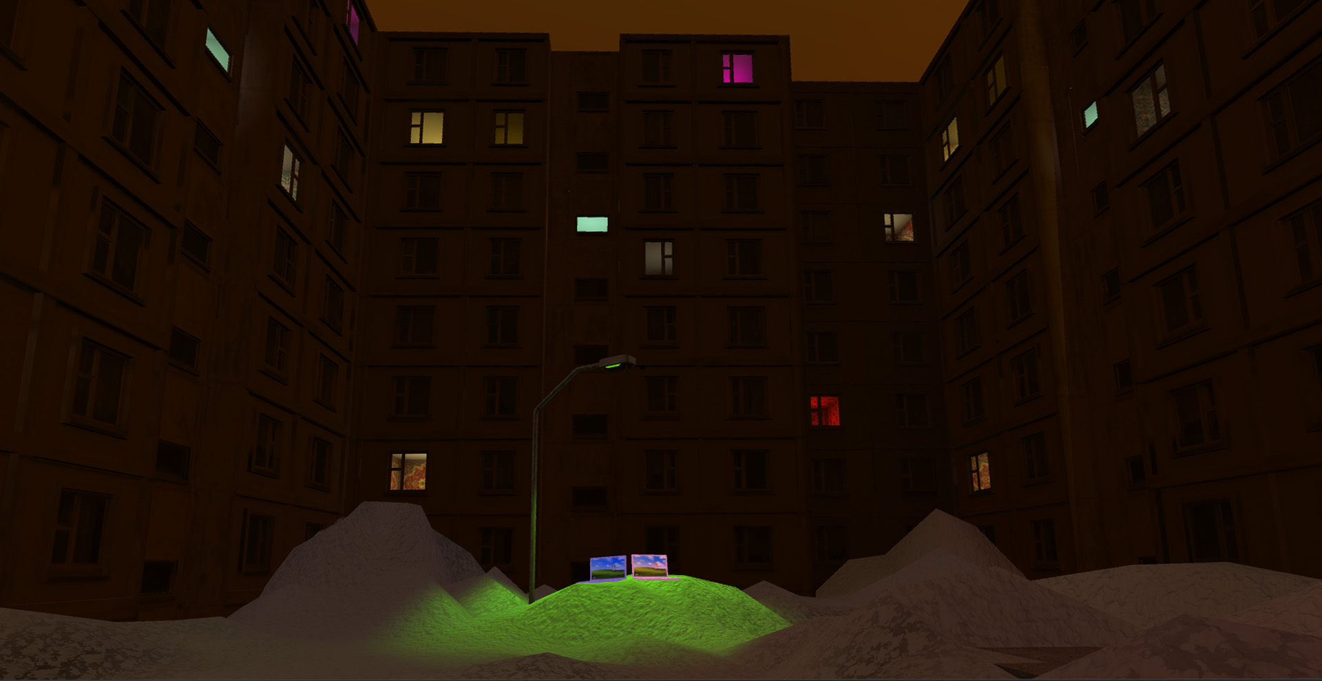 Закольцованное путешествие из удивительного, но бессмысленного мета-поля Windows XP в избитый мир “панельной” реальности и наоборот, где ничто ничего не обозначает.